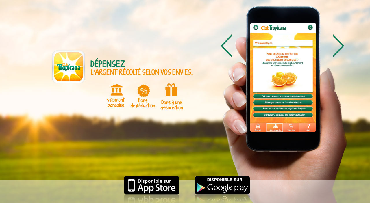 Conception de l'app "Club Tropicana", de son mini-site de promotion ainsi que des posts réseaux sociaux.